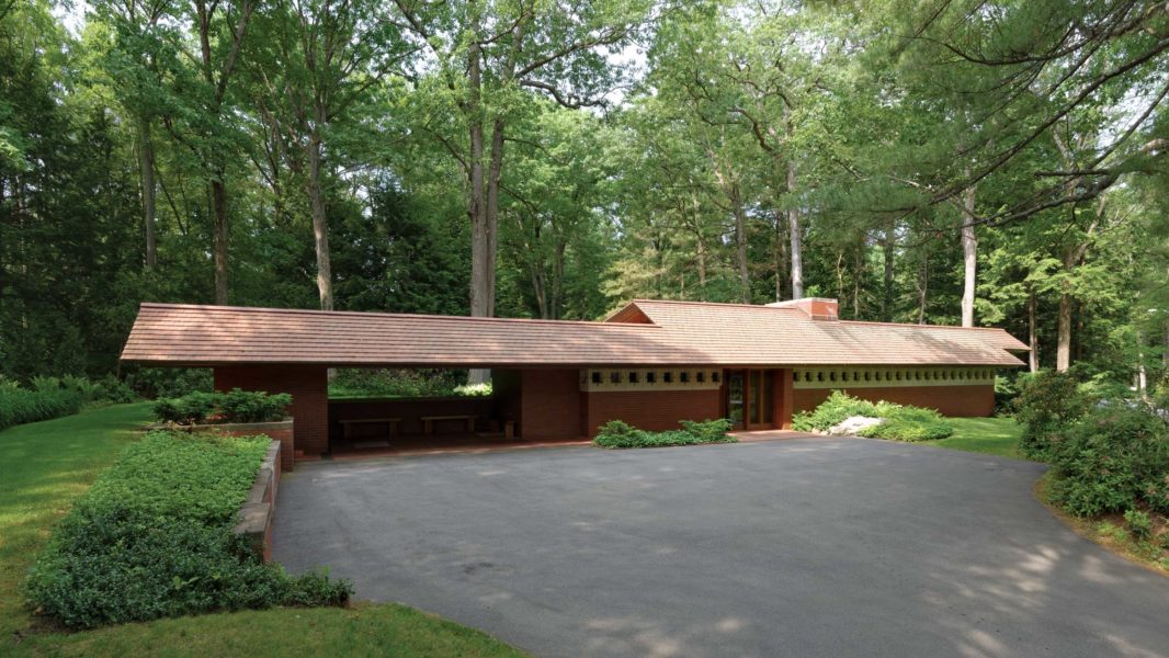 One of his creations, just an hour north of Boston, in Manchester, New Hampshire, is Wright’s 1,458-square-foot Zimmerman House, which illustrates his quintessential, midcentury modern design and was built in 1950. The home is accented by the personal art collection of the Zimmerman family, who lived there for 36 years.